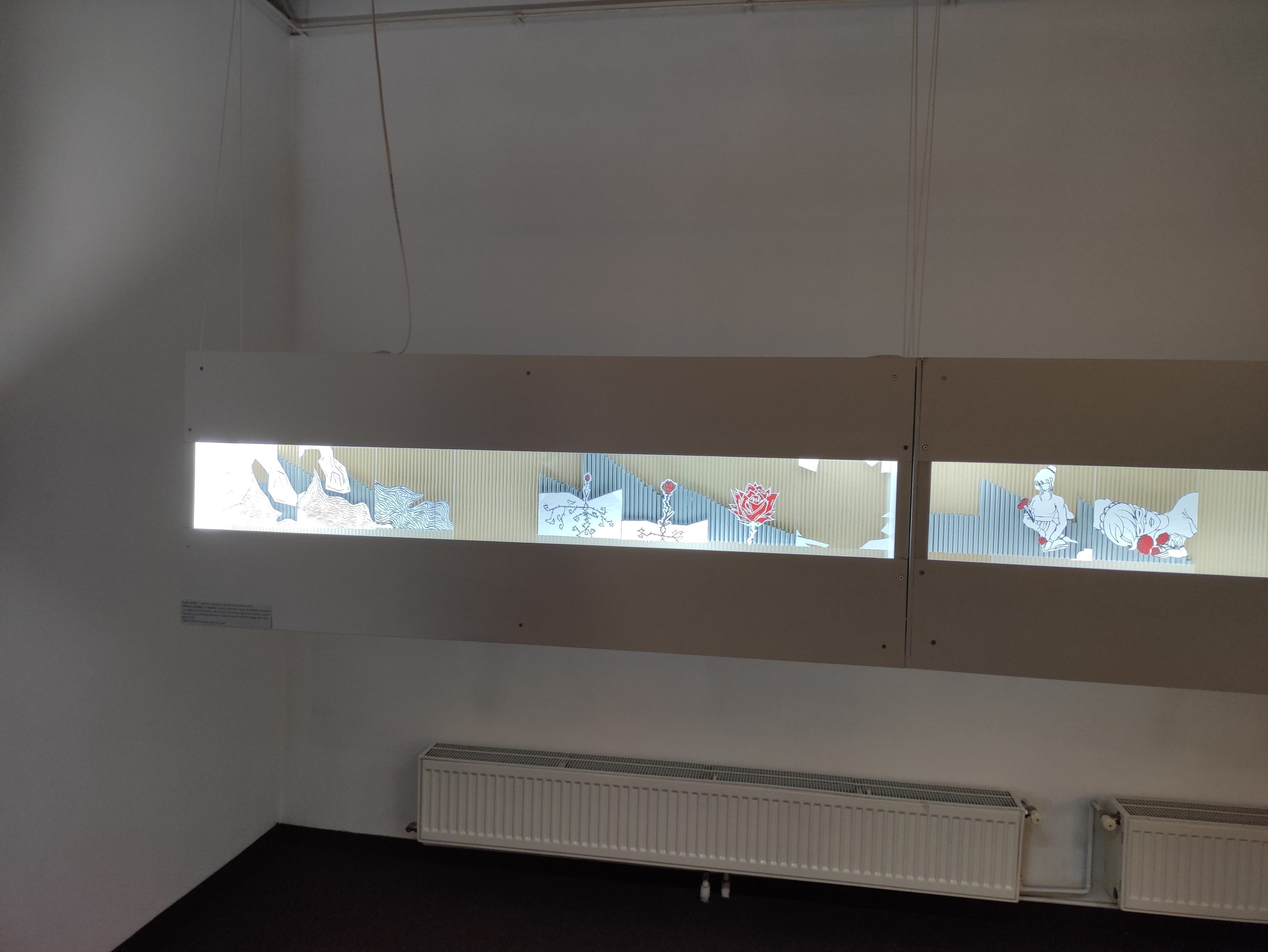 Srodan se pristup zrcali i u radovima Dizajnera unutrašnje arhitekture i polaznicima smjera Likovna umjetnost i dizajn. Crteži i slike tradicionalne izvedbe prikazuju motive iz Štolcerova života dok oni radovi koji su izvedeni u kombiniranoj tehnici narativno dočaravaju izvedbu „Voda zvira“ u kojoj zbog siline višeglasja određene sekvence slušatelju postaju nejasne što je ilustrirano rasipanjem figurativnog motiva. Spomenuti radovi smješteni su unutar bijelih kubusa s unutarnjim osvjetljenjem koji su spušteni s greda te čine još jednu prostornu instalaciju unutar postava. Uz tradicionalne tehnike, učenice i učenici Dizajna unutrašnje arhitekture dio radova su izradili i digitalno što predstavlja posljednju skupinu radova.